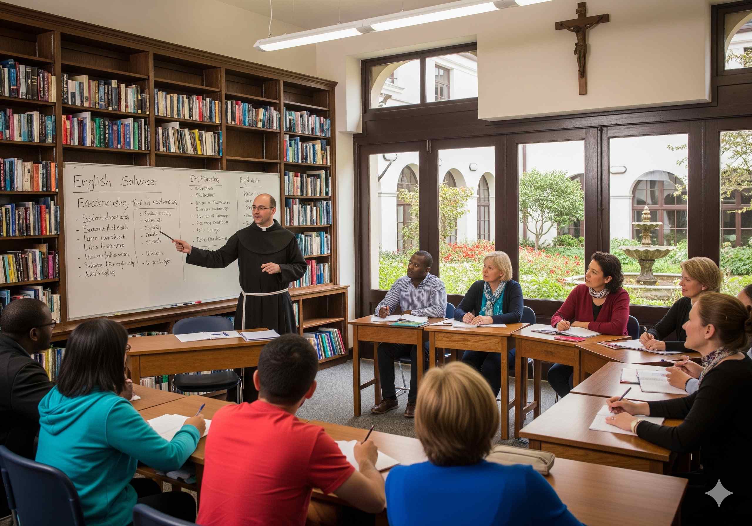 Tại Trung tâm Ngoại ngữ Dòng Tên, hành trình học tập của bạn không chỉ dừng lại ở việc thành thạo một ngôn ngữ mới. Đó là quá trình khám phá bản thân, mở rộng tầm nhìn và kết nối sâu sắc với thế giới xung quanh. Với sự đồng hành tận tâm của các tu sĩ Dòng Tên trong một môi trường học tập đậm chất nhân văn và tri thức, bạn sẽ được trang bị không chỉ kỹ năng giao tiếp vững vàng mà còn cả tư duy phản biện và tinh thần phục vụ. Hãy để chúng tôi cùng bạn mở ra những cánh cửa tương lai và kiến tạo những giá trị tốt đẹp cho cuộc sống.